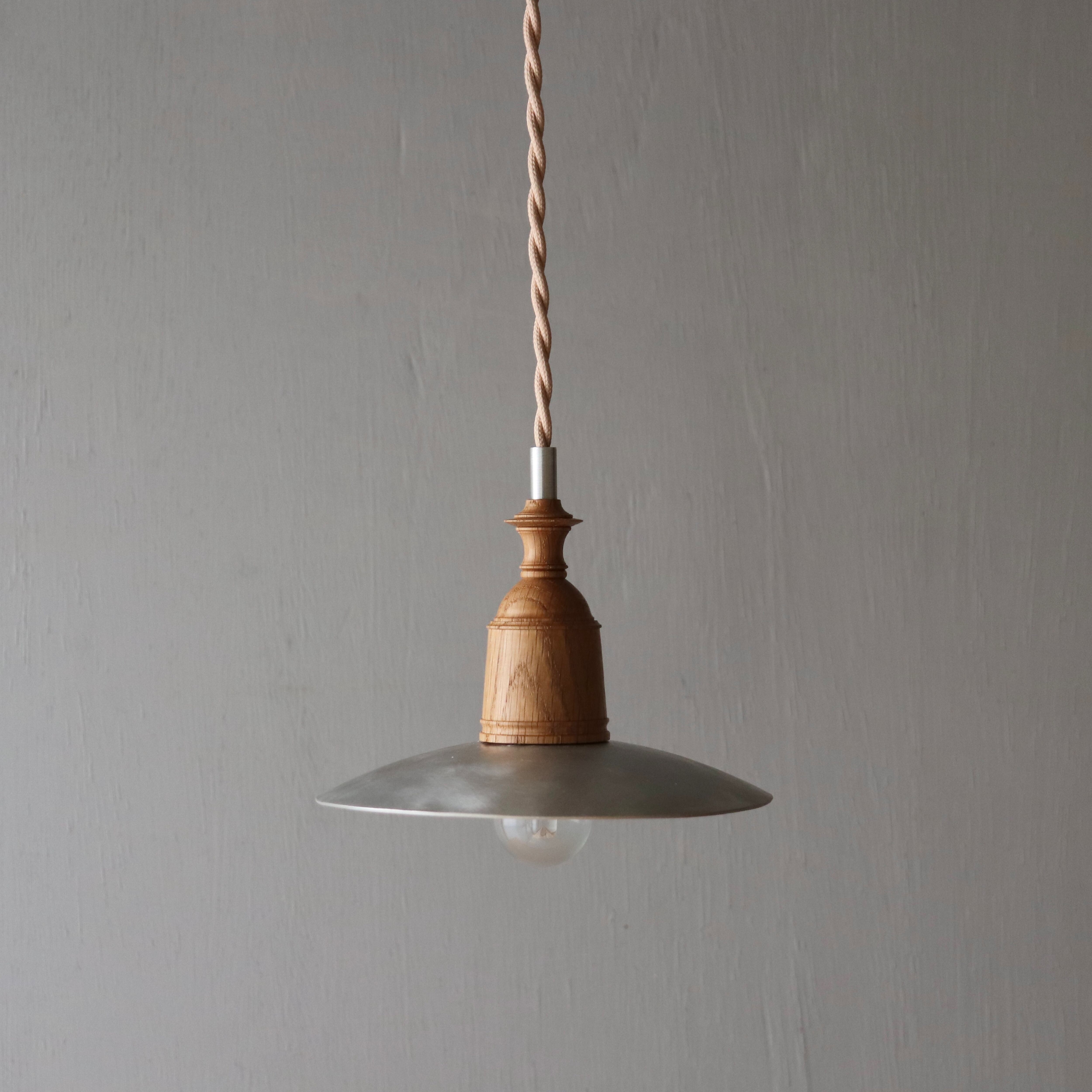 オーク材とアルミの異素材の組み合わせたペンダントライト。